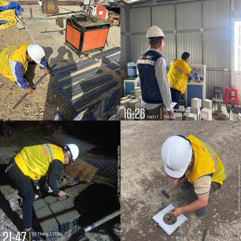 Giữa điều kiện làm việc nhiều áp lực của công trường xây dựng, các cán bộ kỹ thuật của VNT tại trạm Nha Trang vẫn luôn bền bỉ, tận tâm với từng nhiệm vụ được giao. Những hình ảnh ghi lại từ thực tế cho thấy một tinh thần làm việc nghiêm túc, cẩn trọng và đầy trách nhiệm – từ khâu chuẩn bị mẫu, thí nghiệm trong phòng đến kiểm tra trực tiếp ngoài hiện trường.